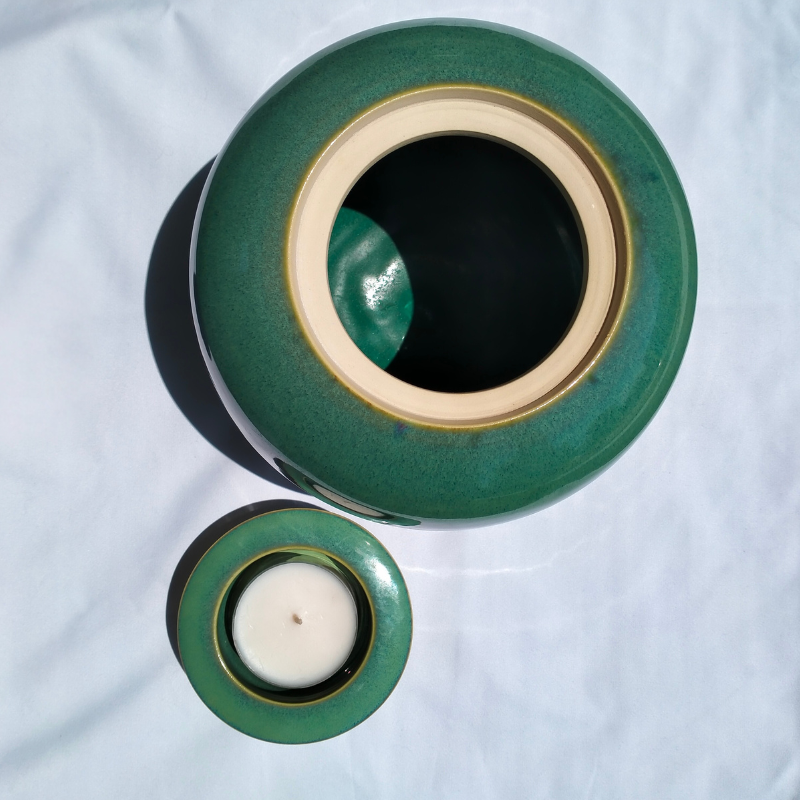 A beautiful ceramic candle urn hand-thrown by West Australian artist, Hayley Bangham of Conscious Clay.